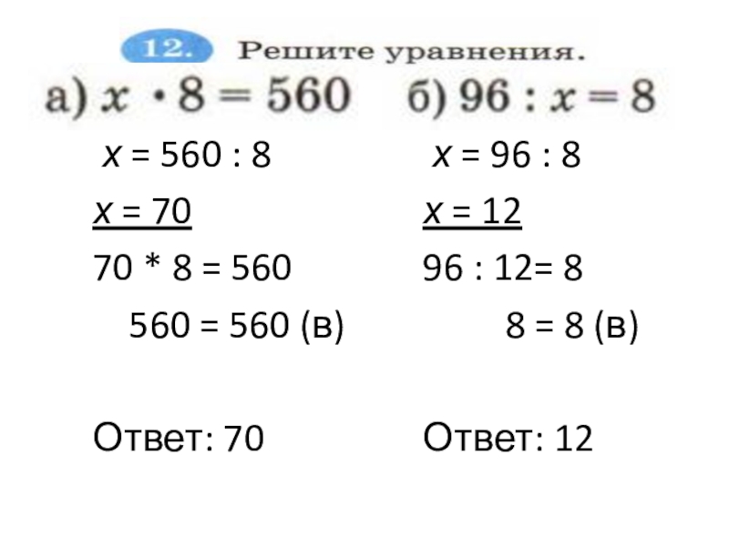 х = 96 : 8