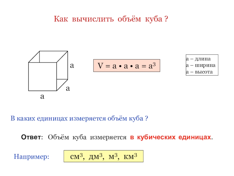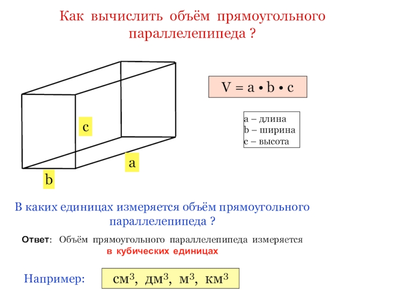 В каких единицах измеряется объём прямоугольного параллелепипеда ?