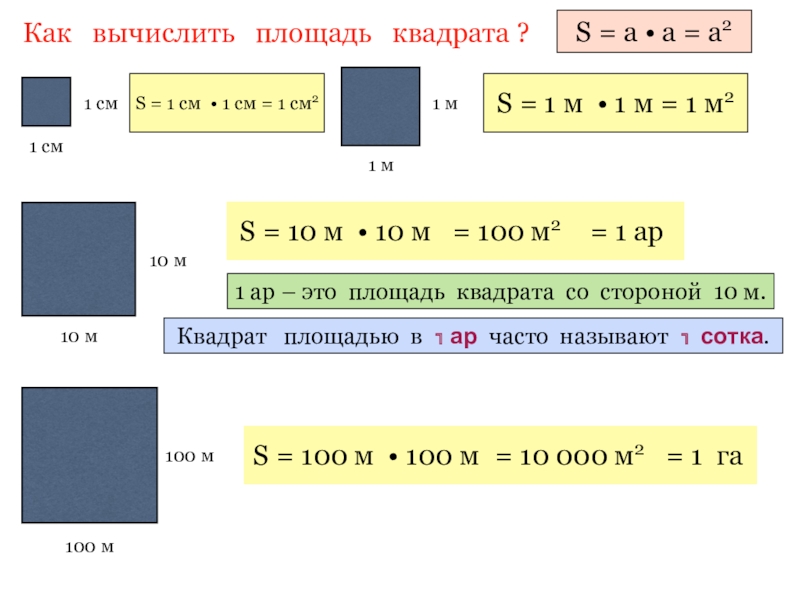Квадрат площадью в 1 ар часто называют 1 сотка.