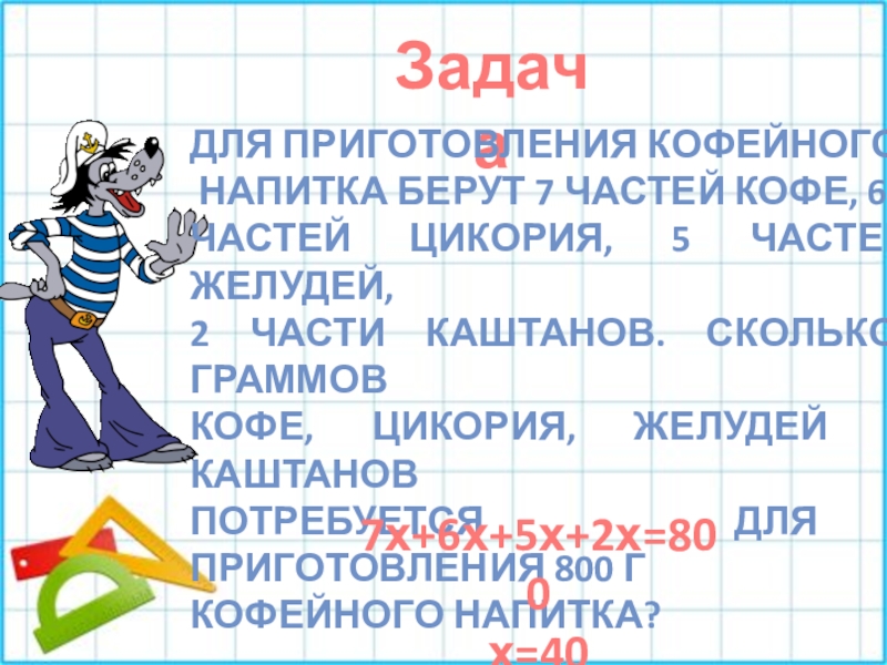 7х+6х+5х+2х=800
