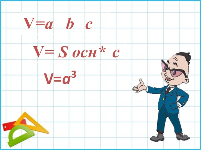 Слайд 9V=abc=300*20*15=90000 (куб.см)