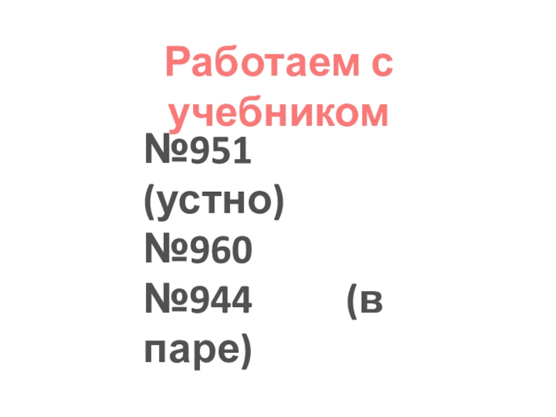Работаем с учебником№951 (устно)№960№944 (в паре)