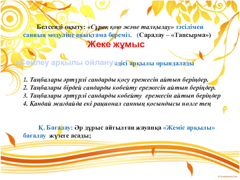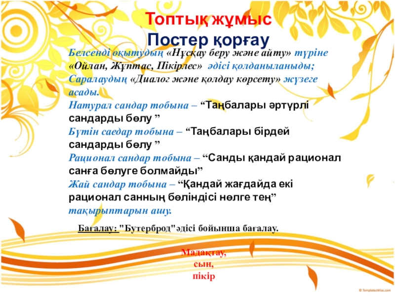 Қ.бағалау: «Мадақтау әдісі бойынша бағалау.