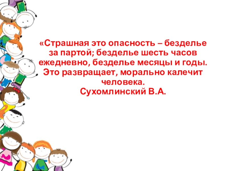 Слайд 2«Страшная это опасность – безделье за партой; безделье шесть часов ежедневно,