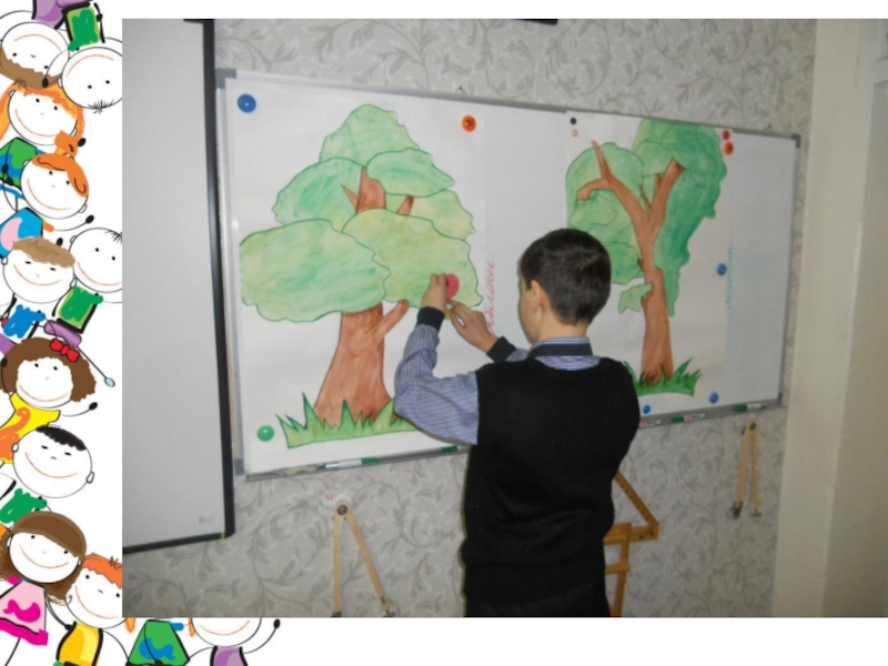 Заранее готовятся два больших плаката с нарисованным на каждом из них деревом. Одно дерево подписано “Яблоня”, второе – “Лимонное дерево”. Обучающимся раздаются также заранее вырезанные из бумаги крупные яблоки и лимоны.