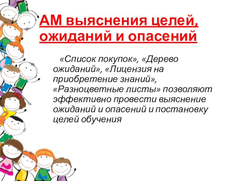 Слайд 8АМ выяснения целей, ожиданий и опасений