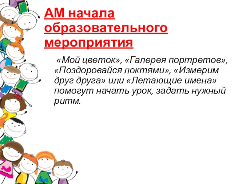«Измерим друг друга» или «Летающие имена» помогут начать урок, задать нужный ритм.