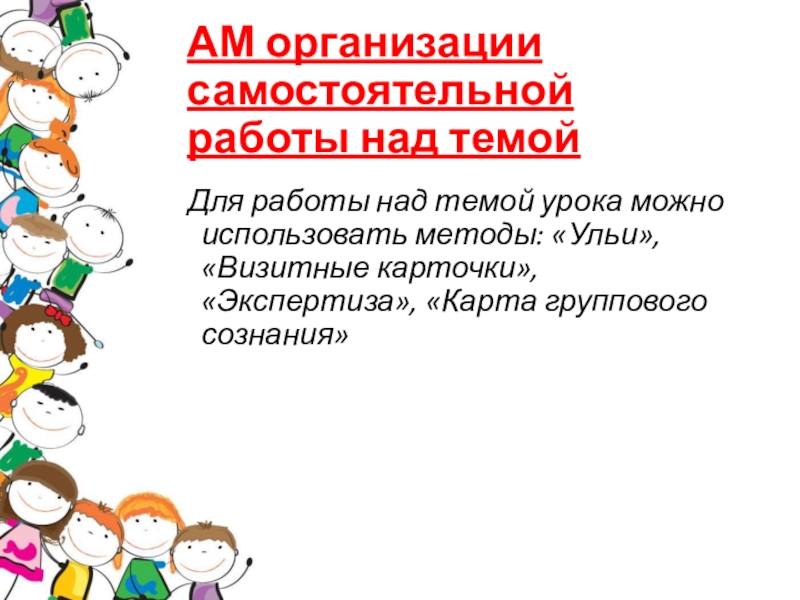 можно использовать методы: «Ульи», «Визитные карточки», «Экспертиза», «Карта группового сознания»