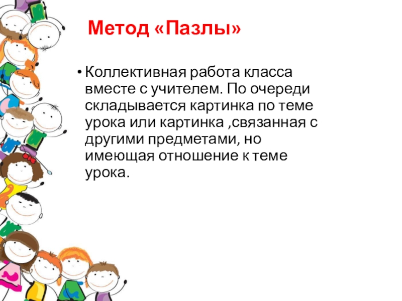 Коллективная работа класса вместе с учителем. По очереди складывается картинка