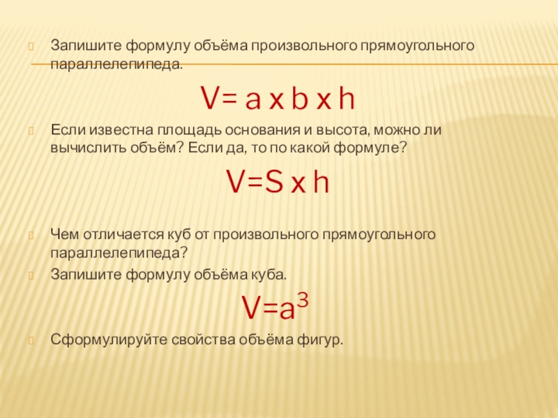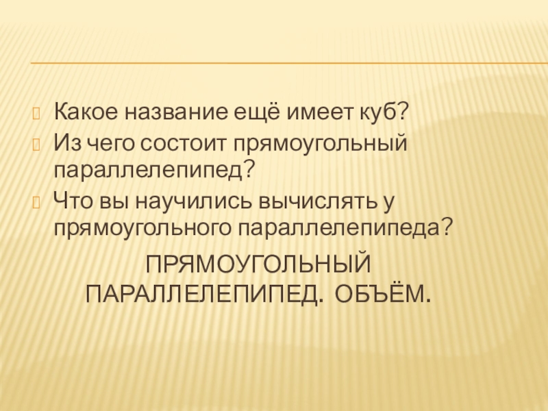 - Прямоугольный параллелепипед. Объём;