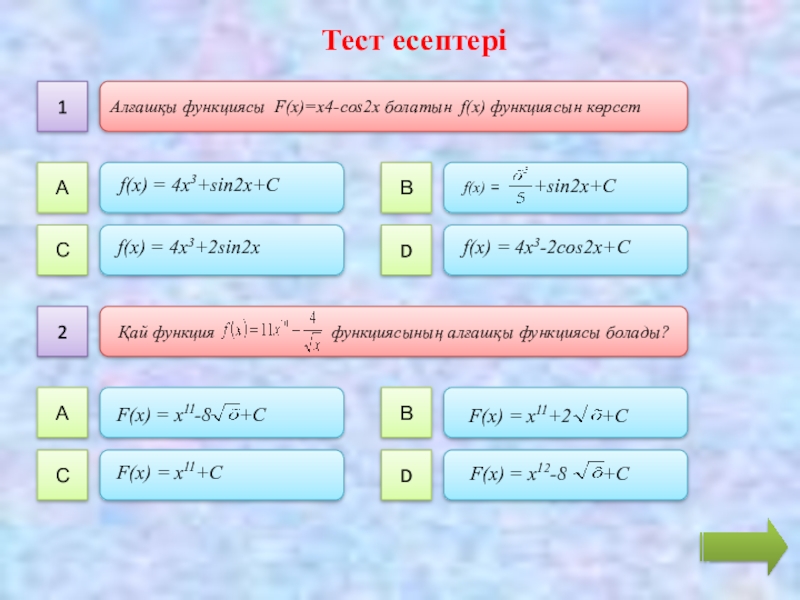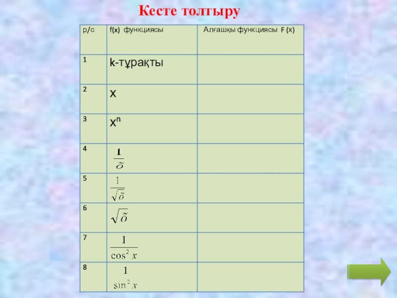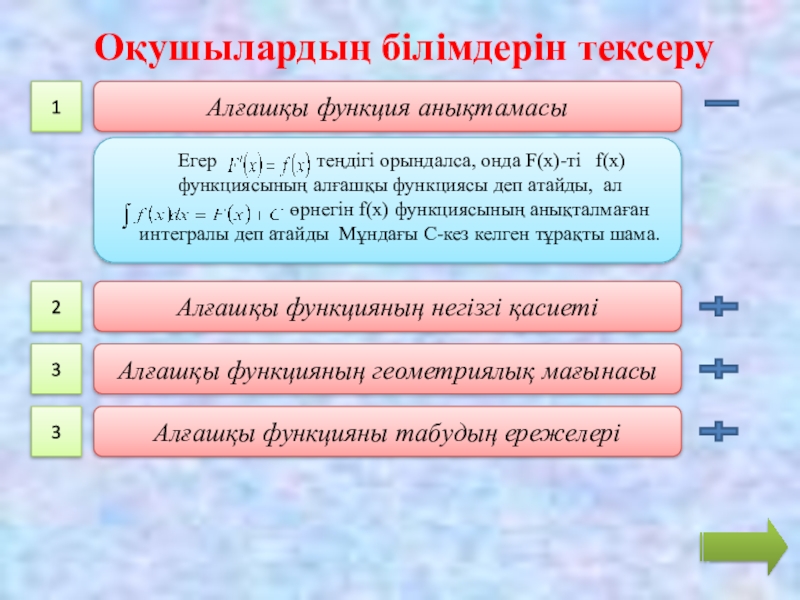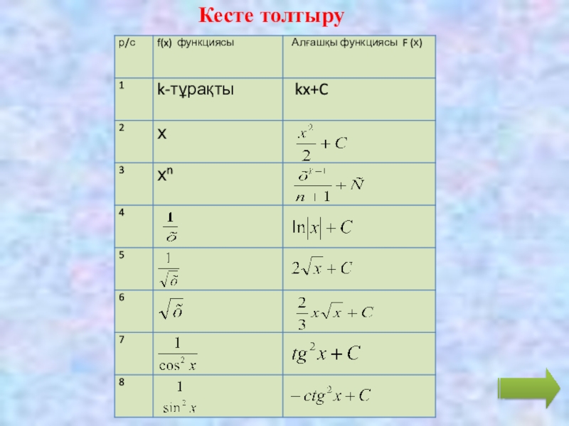 өрнегін f(x) функциясының анықталмаған интегралы деп атайды Мұндағы С-кез келген тұрақты шама.