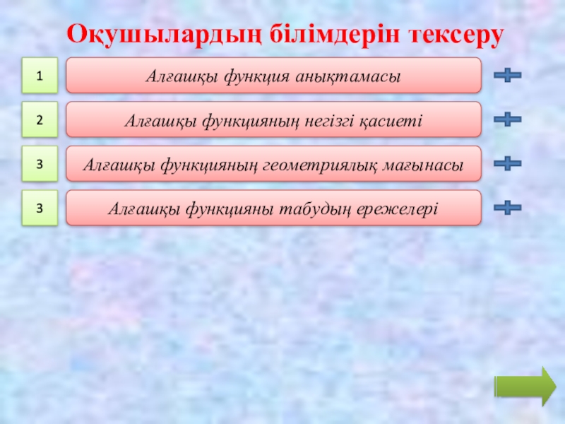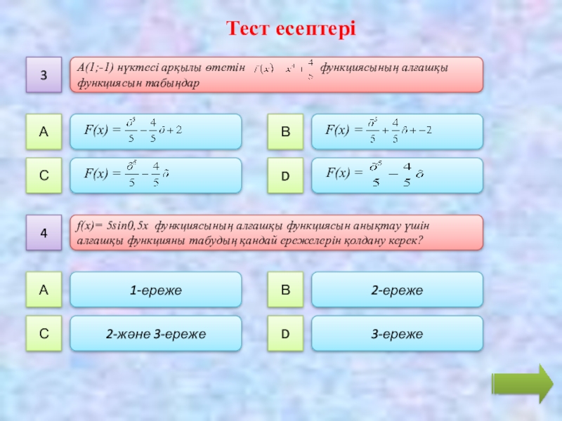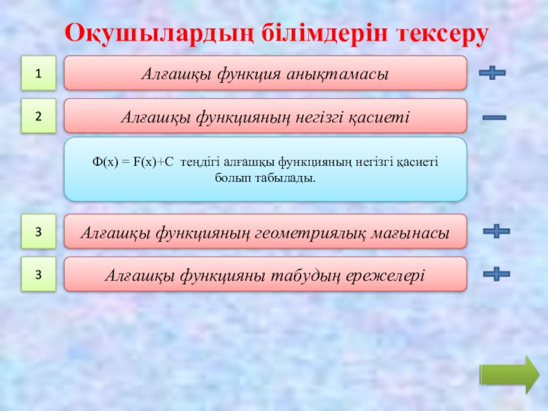 Егер F(x) функциясы f(x) функциясының алғашқы функциясы,ал k-тұрақты болса, онда k F(x) функциясы kf(x)функциясы үшін алғашқы функция болады.
