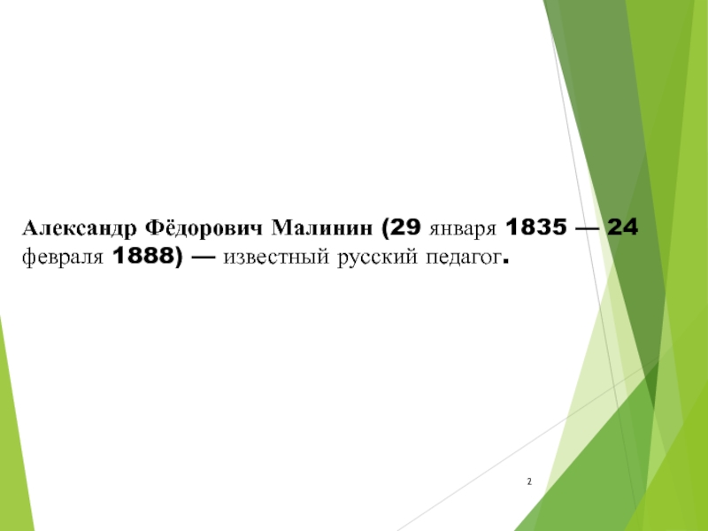 Слайд 2Александр Фёдорович Малинин (29 января 1835 — 24 февраля 1888) — известный русский