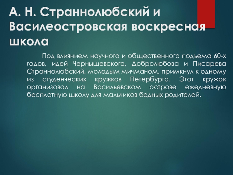 Слайд 22А. Н. Страннолюбский и Василеостровская воскресная школа