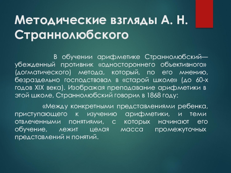 Слайд 26Методические взгляды А. Н. Страннолюбского