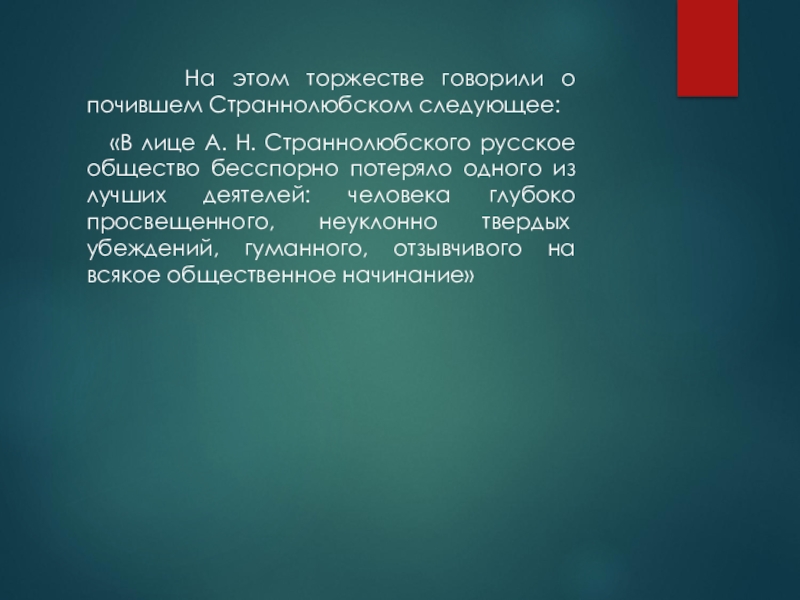 Слайд 11 На этом торжестве говорили о почившем Страннолюбском следующее: