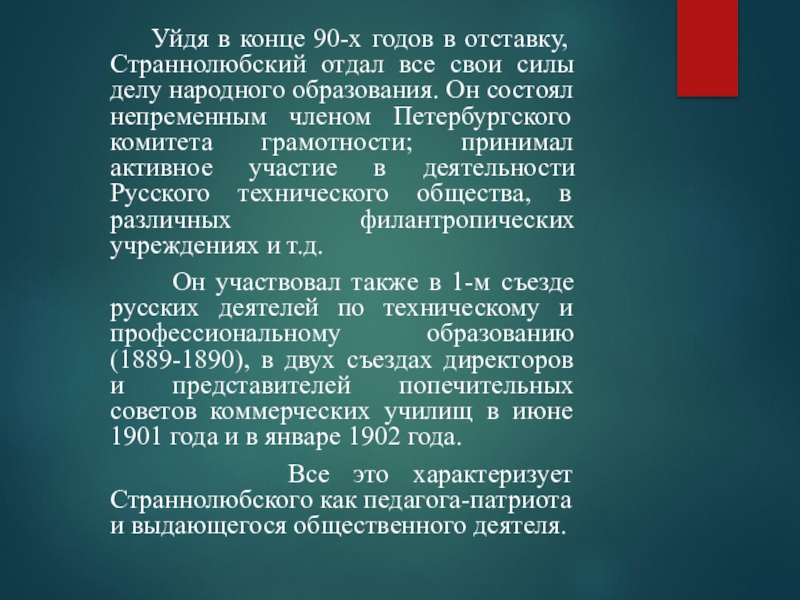 Все это характеризует Страннолюбского как педагога-патриота и выдающегося общественного деятеля.