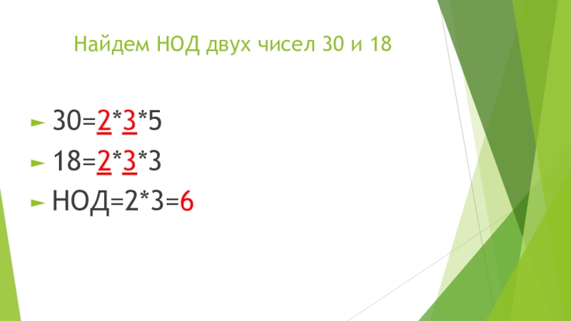 Слайд 4Найдем НОД двух чисел 30 и 18