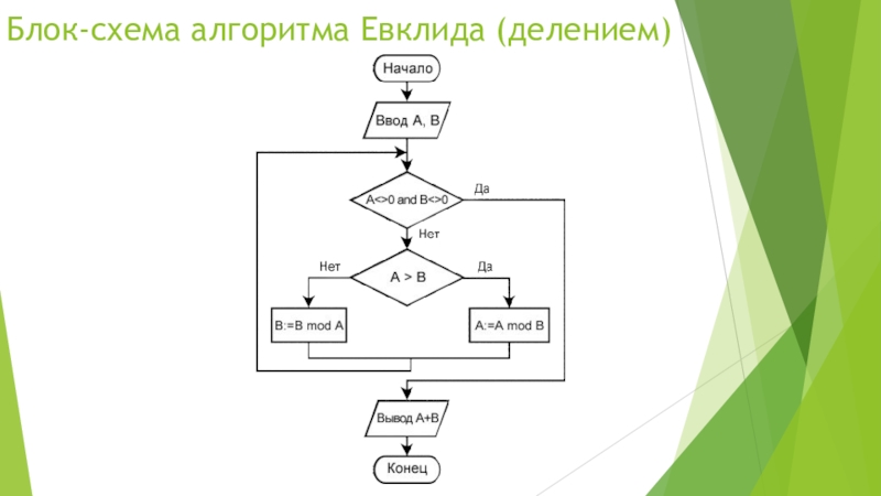 Слайд 14Блок-схема алгоритма Евклида (делением)