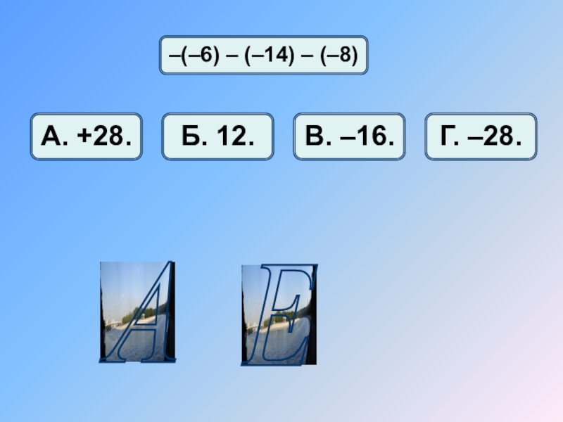 –(–6) – (–14) – (–8)А. +28.Б. 12.В. –16.Г. –28.А Е