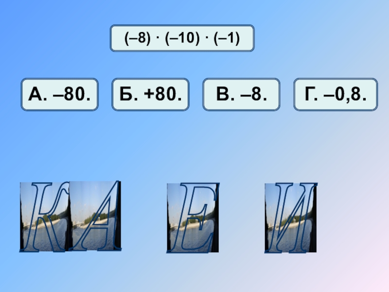 (–8) · (–10) · (–1)А. –80.Б. +80.В. –8.Г. –0,8.К А Е И