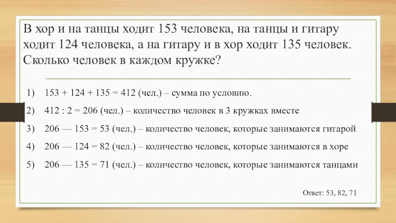 206 — 153 = 53 (чел.) – количество человек, которые занимаются гитарой