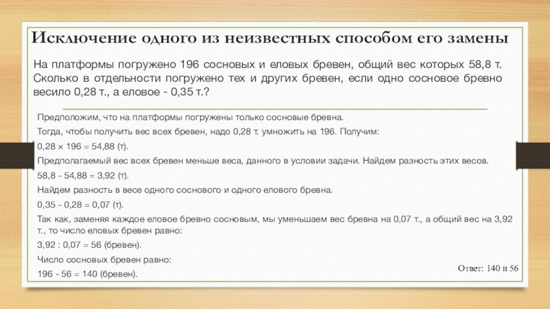 Тогда, чтобы получить вес всех бревен, надо 0,28 т. умножить на 196. Получим: