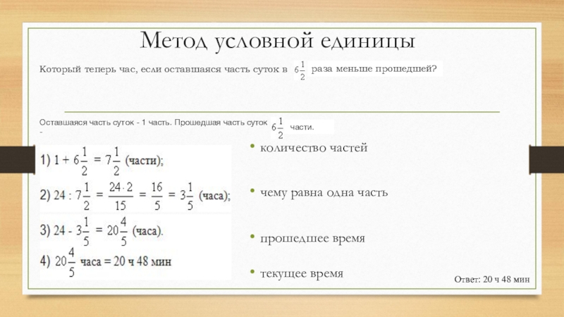 Оставшаяся часть суток - 1 часть. Прошедшая часть суток -