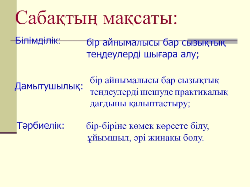 Тәрбиелік: бір-біріңе көмек көрсете білу,