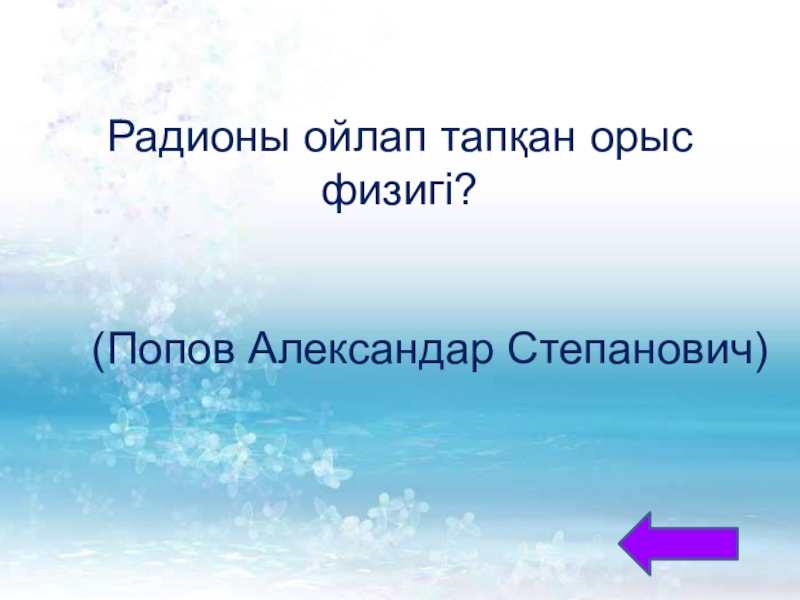 Слайд 13Радионы ойлап тапқан орыс физигі?