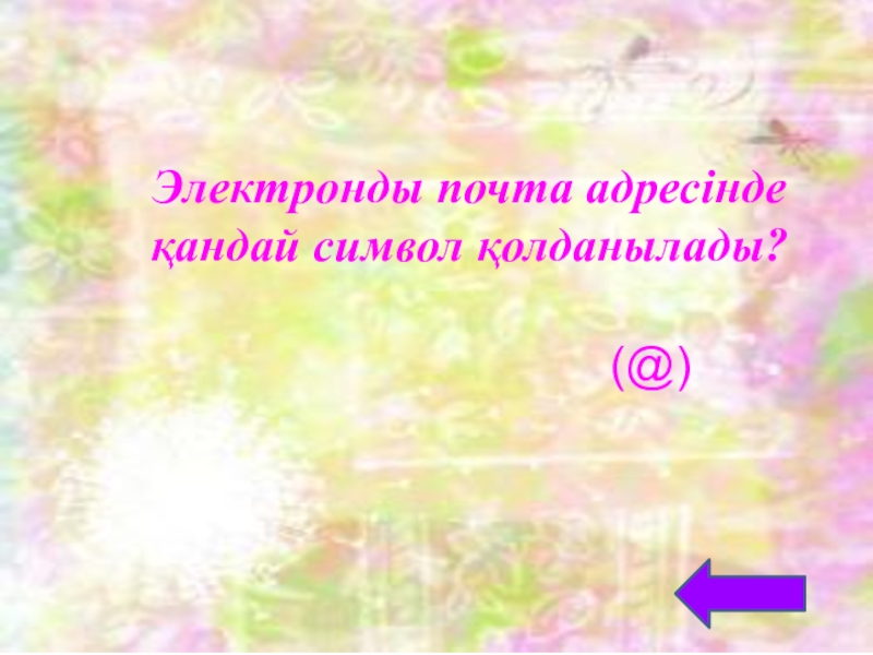 Слайд 7Электронды почта адресінде қандай символ қолданылады?