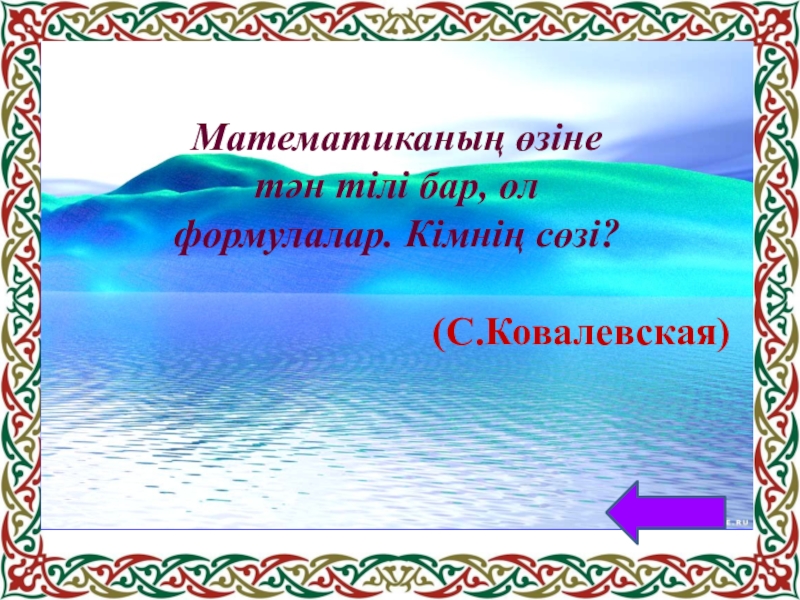 Математиканың өзіне тән тілі бар, ол формулалар. Кімнің сөзі? (С.Ковалевская)
