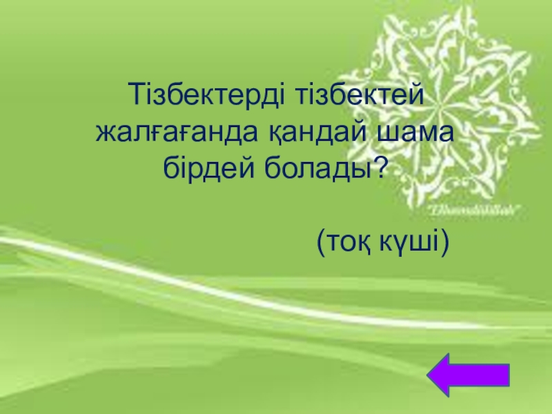 Слайд 12Тізбектерді тізбектей жалғағанда қандай шама бірдей болады?