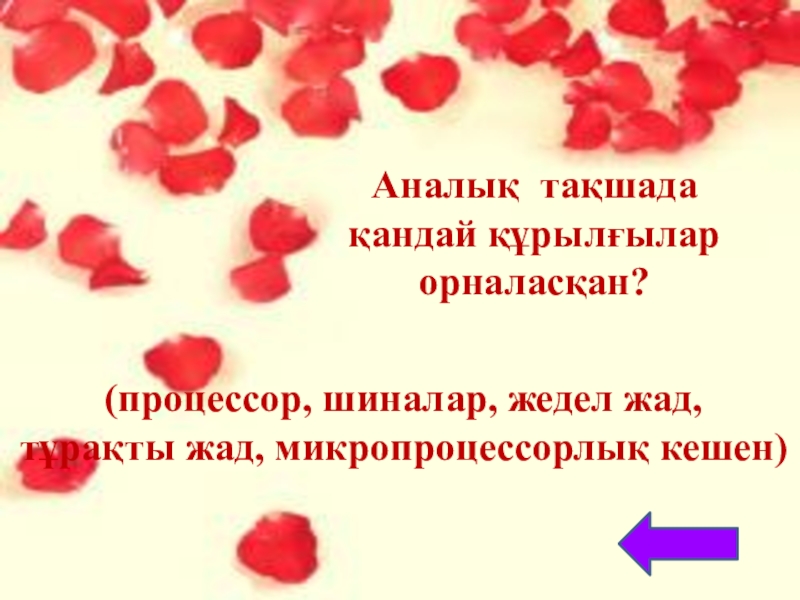 Аналық тақшада қандай құрылғылар орналасқан? (процессор, шиналар, жедел жад, тұрақты жад, микропроцессорлық кешен)