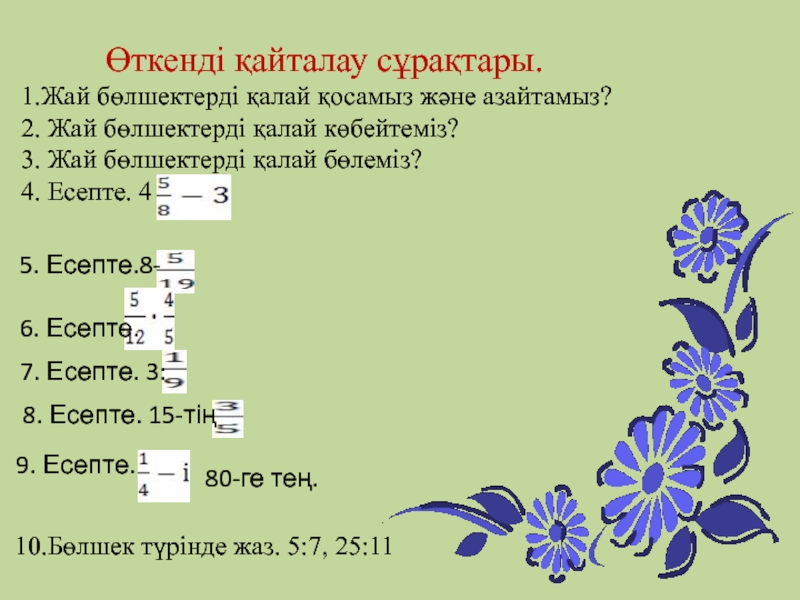 10.Бөлшек түрінде жаз. 5:7, 25:11