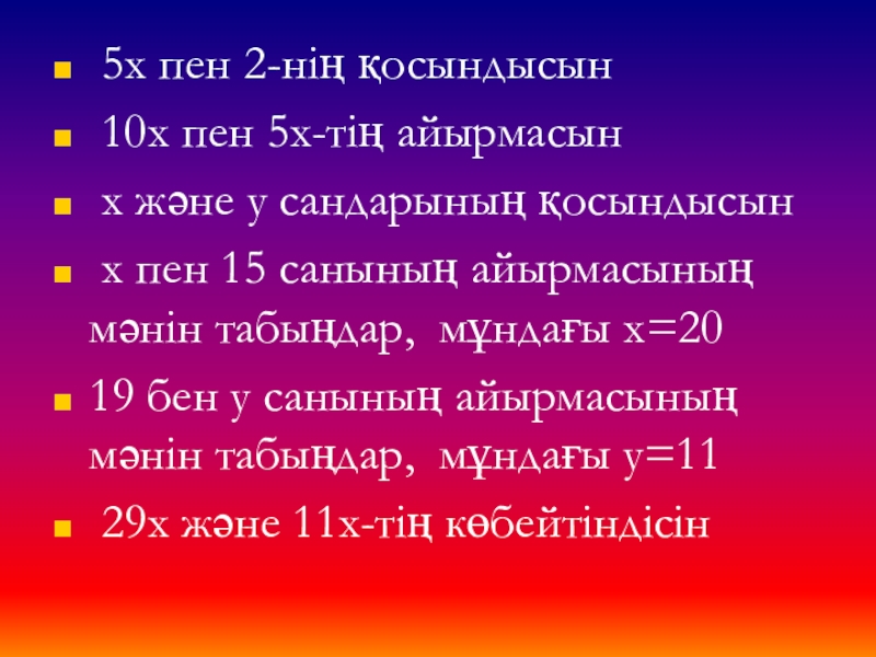 х пен 15 санының айырмасының мәнін табыңдар, мұндағы х=20