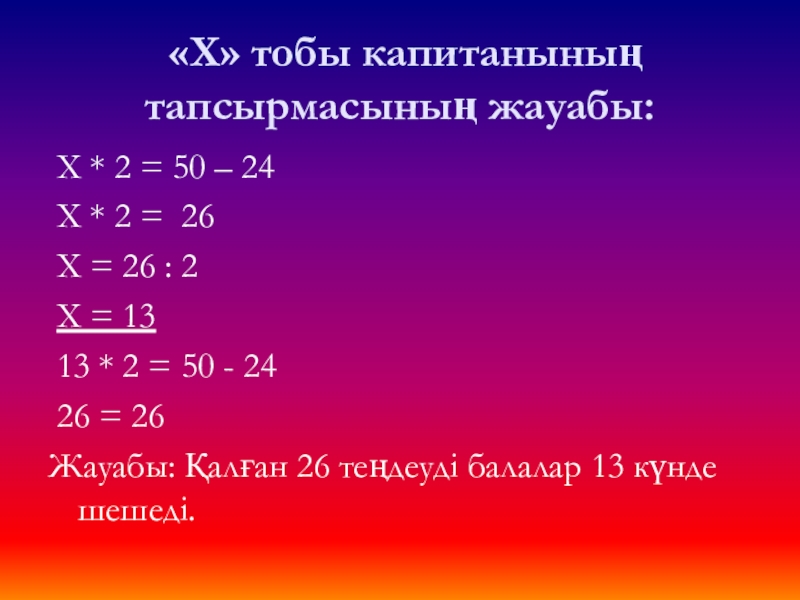 Слайд 14 «Х» тобы капитанының тапсырмасының жауабы: