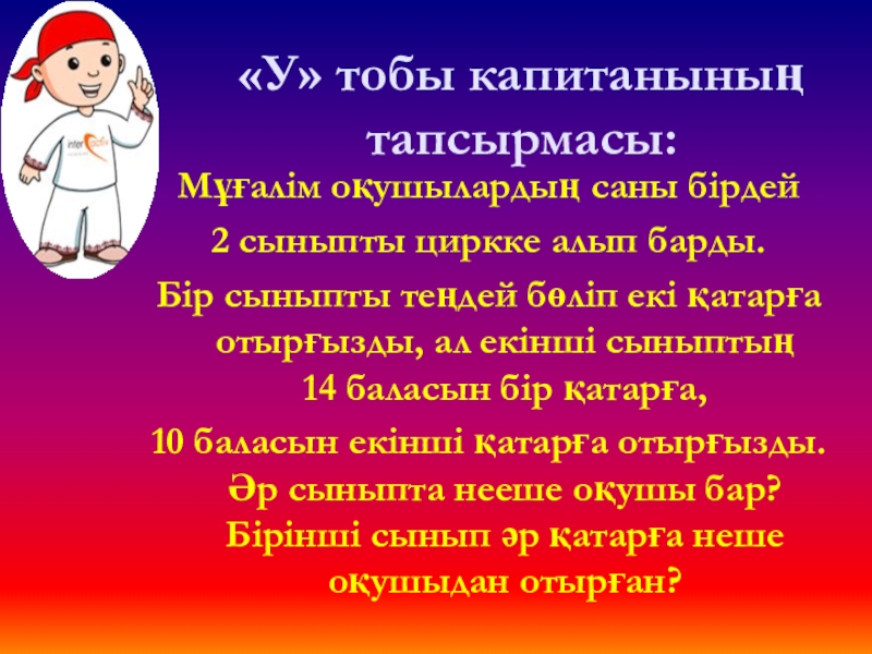 Слайд 13«У» тобы капитанының тапсырмасы: