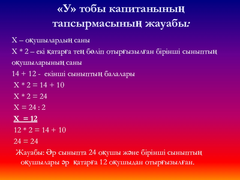 Слайд 15«У» тобы капитанының тапсырмасының жауабы: