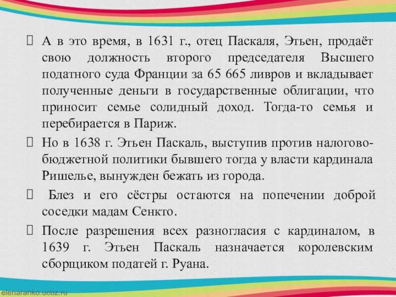 Слайд 7А в это время, в 1631 г., отец Паскаля, Этьен, продаёт