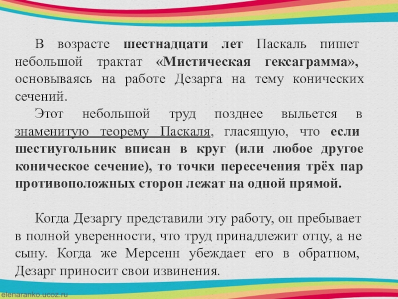 Слайд 6В возрасте шестнадцати лет Паскаль пишет небольшой трактат «Мистическая гексаграмма», основываясь