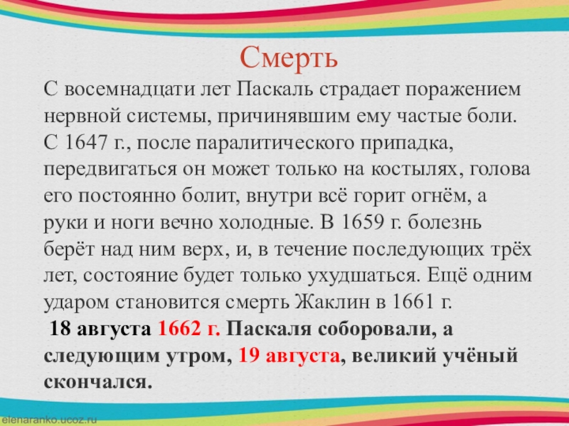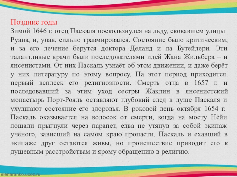 Зимой 1646 г. отец Паскаля поскользнулся на льду, сковавшем улицы