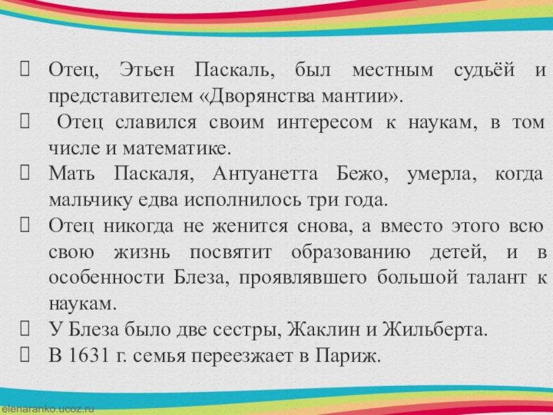 Слайд 3Отец, Этьен Паскаль, был местным судьёй и представителем «Дворянства мантии».
