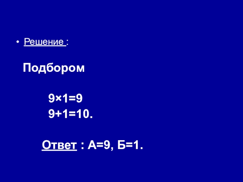 Ответ : А=9, Б=1.