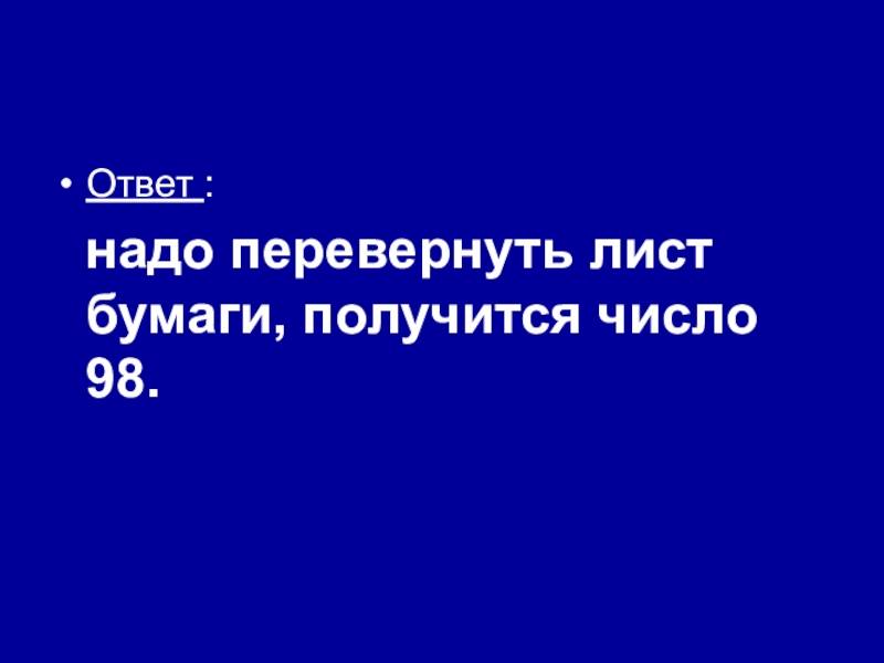 надо перевернуть лист бумаги, получится число 98.