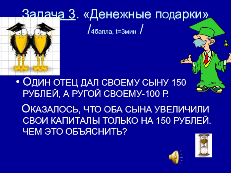 Слайд 62Задача 3. «ДенеЖные пОДарки»