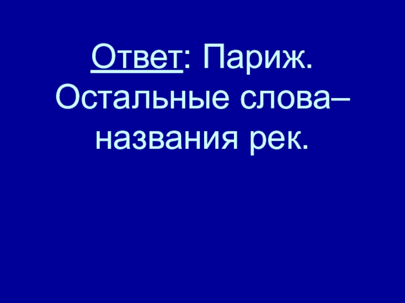 Слайд 70Ответ: Париж. Остальные слова– названия рек.