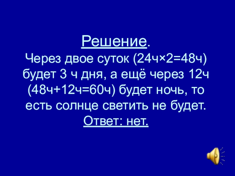 (48ч+12ч=60ч) будет ночь, то есть солнце светить не будет.