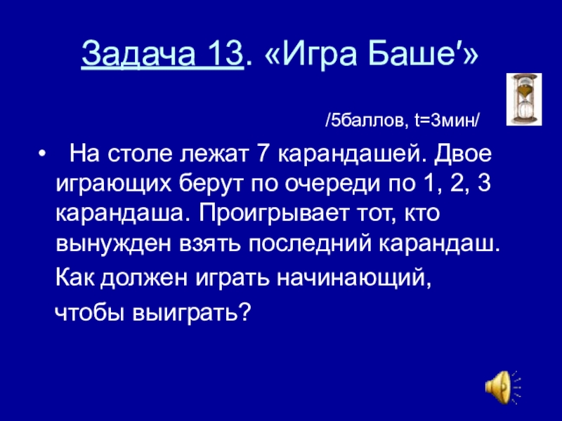 Слайд 25Задача 13. «Игра Баше′»