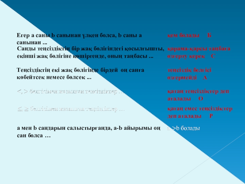 а мен b сандарын салыстырғанда, a-b айырымы оң сан болса …